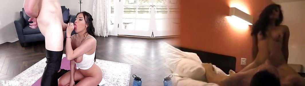 Rocky Kerl Marco Banderas, genießt deepthroat Schwanz saugen von hot und sexy Brünette Tia Cyrus auf seinem Bett.