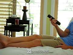 Blondes Girl masturbiert und bearbeitet Daddys Schwanz