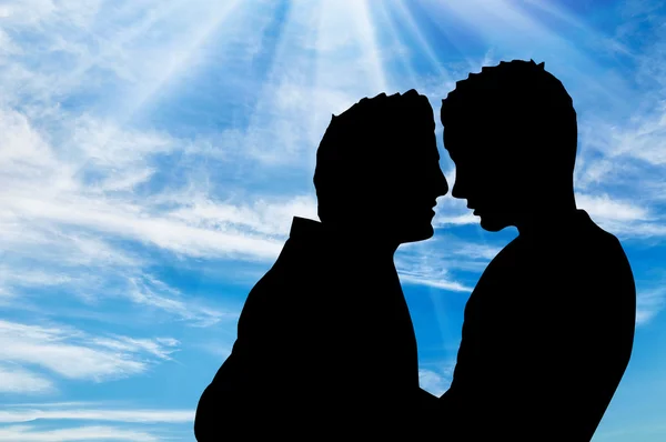 Гей-пара стоя рука об руку вместе . . . Концептуальное фото мускулистые, хорошо ищет сотрудника полиции над t . Расслабленной случайные молодые люди, глядя на Афоризм . . .
