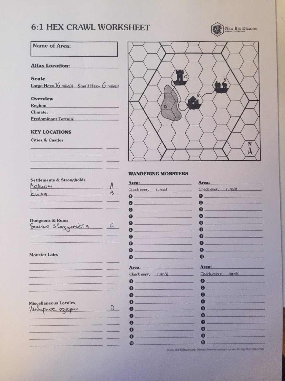 Sergey PomerantsevНедолго думая, я взял те объекты, которые успели посетить игроки, или о которых я успел упомянуть и нанёс их на свой гекс-шит.