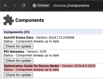 When you visited chrome://components/, the download of Optimization Guide On Device Model started without any initiation.