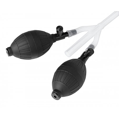 Das Mädchen streckt den Anus mit einem Pomp und steckt einen großen Gummiarm hinein