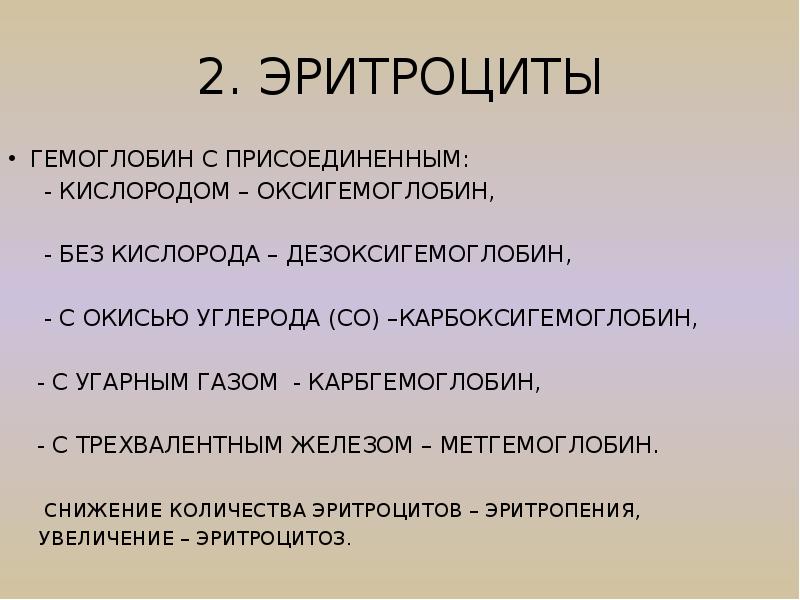 Гемоглобин оксигемоглобин гемоглобин карбгемоглобин