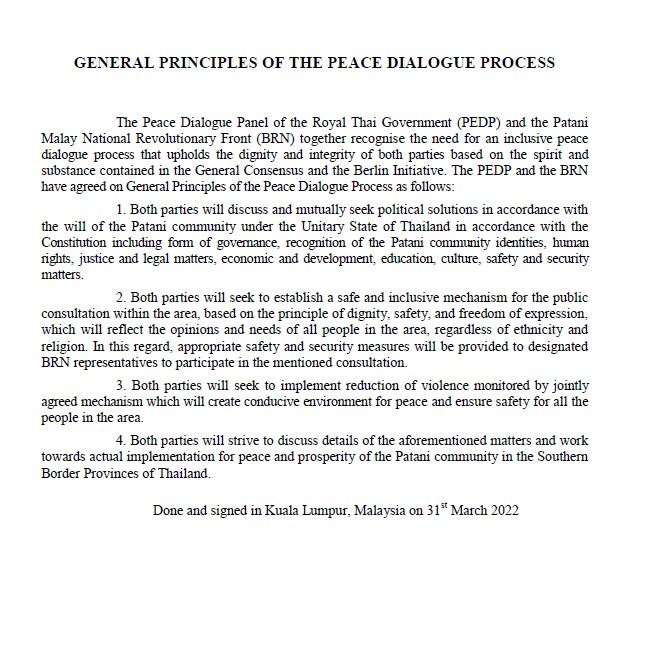 General Principles of the Peace Dialogue Process