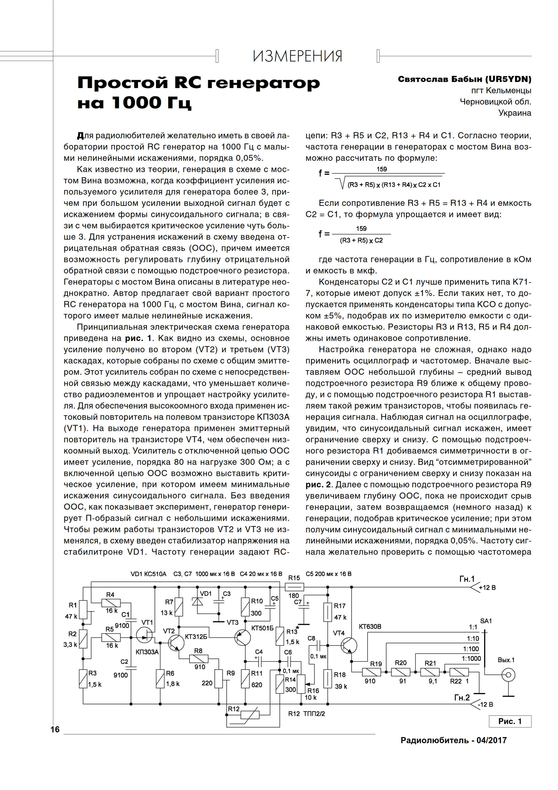 Генератор 1000 гц