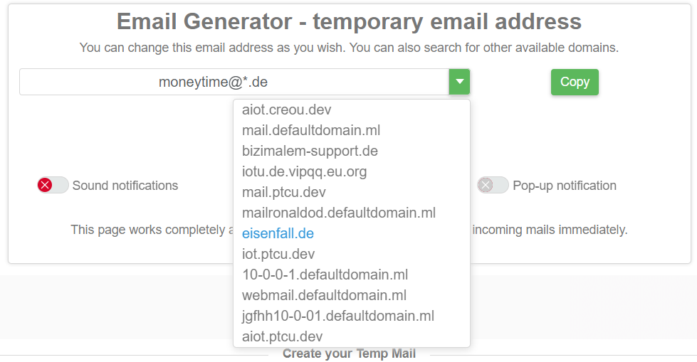 Генератор временных e-mail с кучей доменов