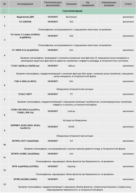 Генетическая тромбофилия инвитро