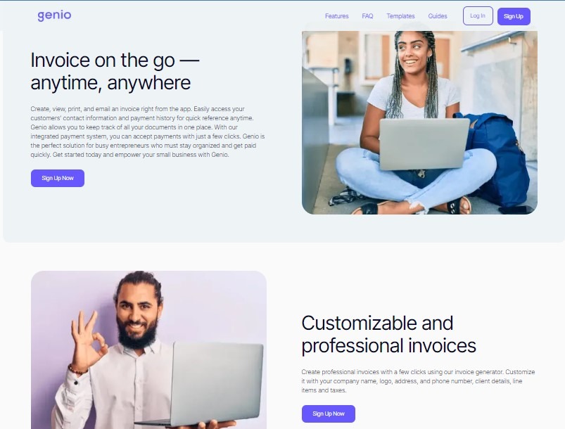 Welcome to Genio, the go-to invoice generator for small businesses and freelancers. We bring you many invoice templates, including Microsoft Excel and PDF formats, tailored to all industries. Explore our section featuring over 300 customized invoice templates designed to cater to your diverse business needs. Genio's invoice maker is at your service if you require an invoice example or want to leverage the best free invoicing software. It's an online invoice creator designed to simplify and streamline your invoicing process.