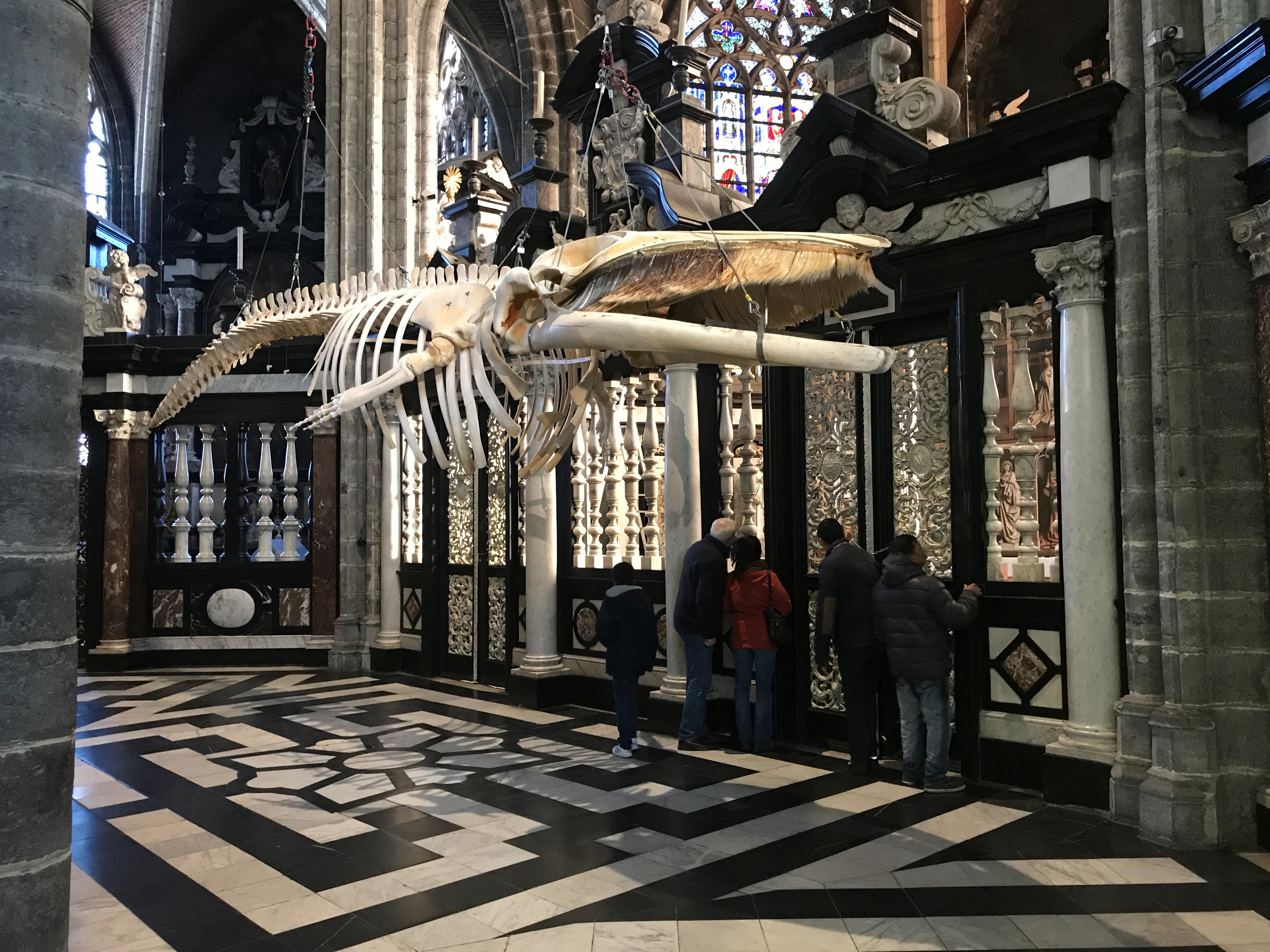 Интересный у них тут собор. Внутри здания висит скелет животного, которое, по всей видимости, из какого-нибудь палеозоя или что-то типа того. Если вы, как и я, истово уверены в том, что миру немногим более 6000 лет, то вы сразу заметите некоторые противоречия.