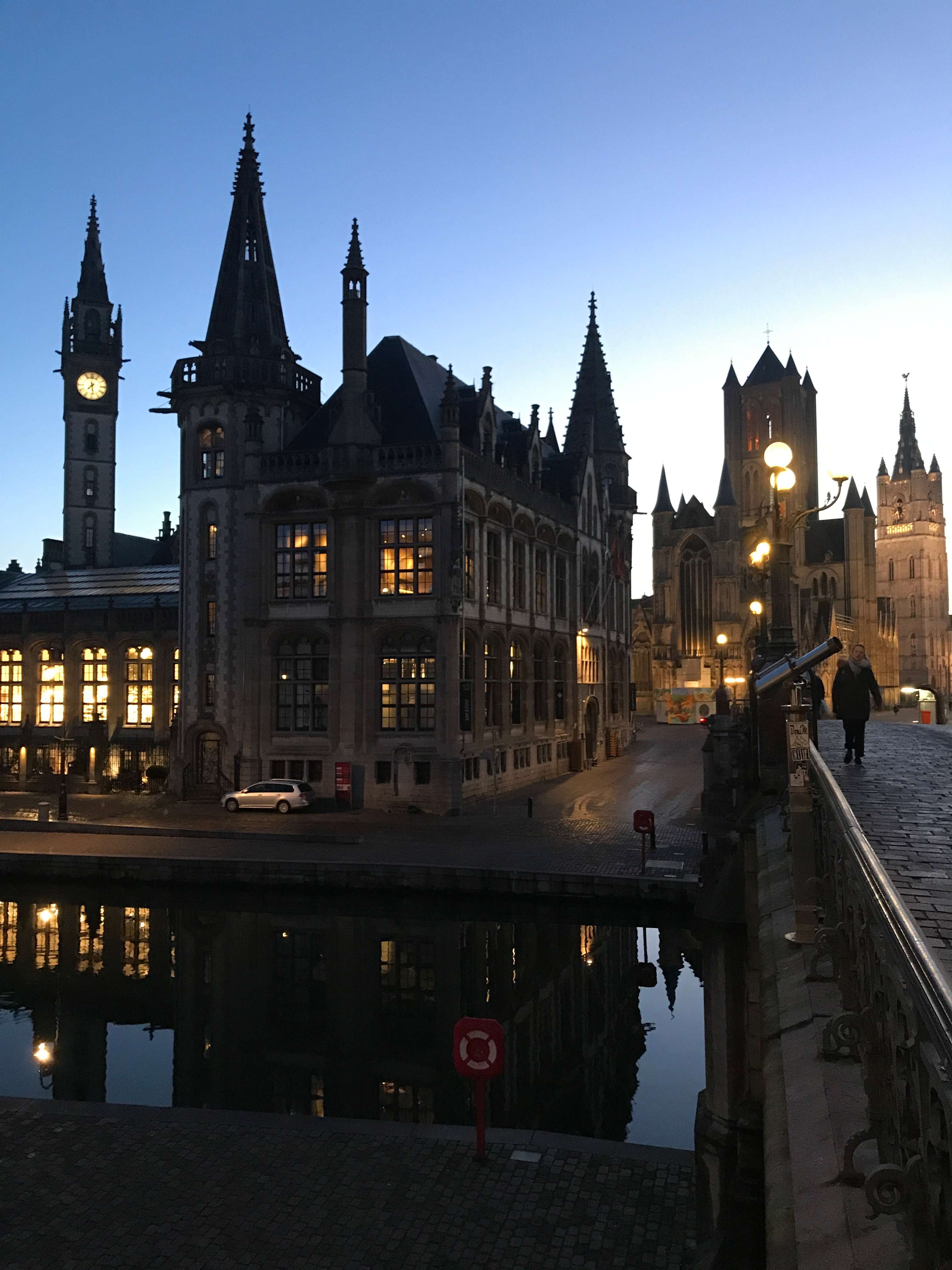 Непосредственно в старом городе и обязательно ночью (я настаиваю на этом) понемногу начинаешь понимать, почему Гент называют средневековым городом. Пару раз ловил себя на мысли, что сейчас где-то в правом нижнем углу советник с книгой в руках будет рекомендовать мне понизить налоги с крестьян, ибо последние не вывозят и сильно возмущены.