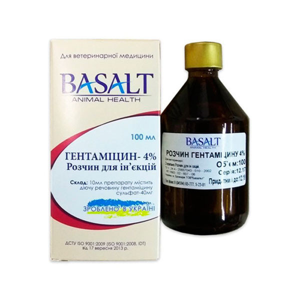 Гентамицин 4% раствор для инъекций обладает бактерицидным действием . . . Флаконы из стекла, закрытые резиновой пробкой под алюминиевую обкатку, по 5, 10, 20, 50, 100 и 200 мл .