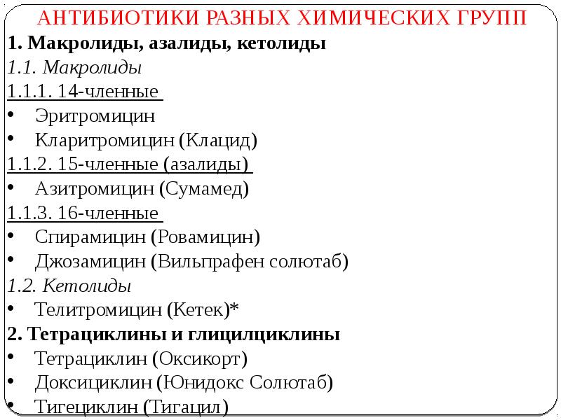 Группы антибиотиков . Классификация и основные препараты . . .