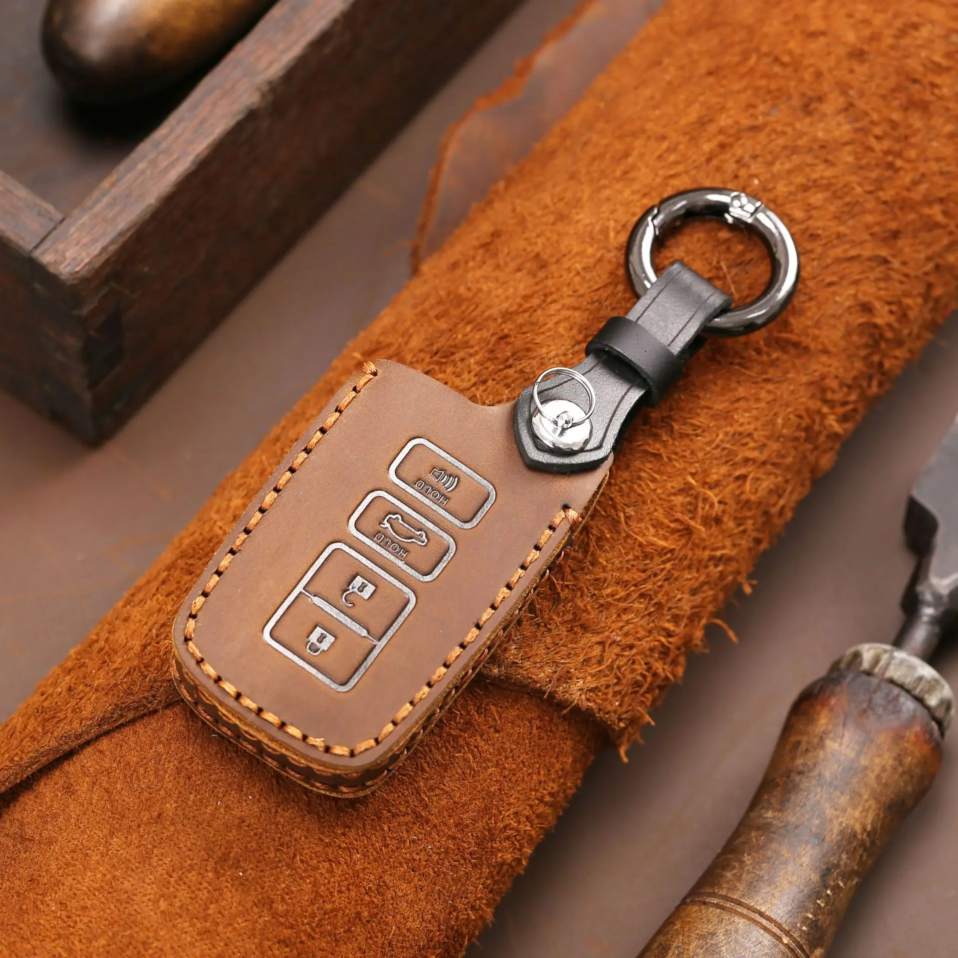 «Genuine Leather 4 Button Car Key Case Cover Fob For Toyota Avalon Camry Corolla RAV4 Highlander Auris CHR Land Cruiser Keychain» по лучшей цене на рынке! Всего за 9$ (855рублей)