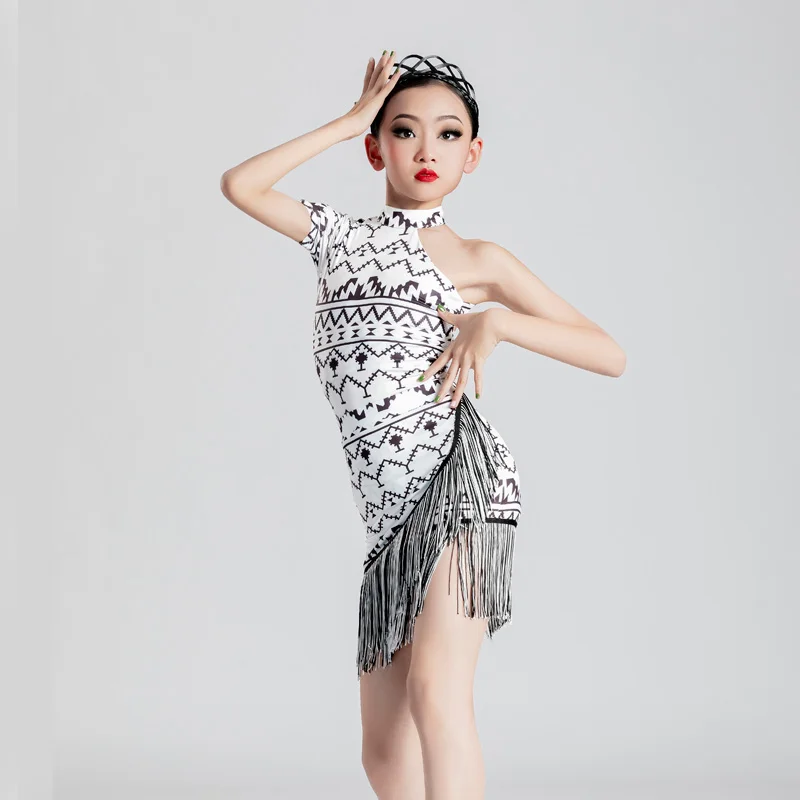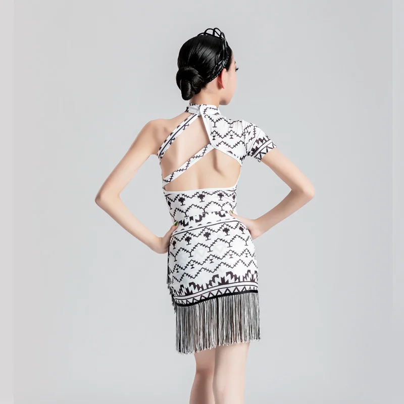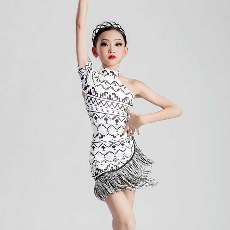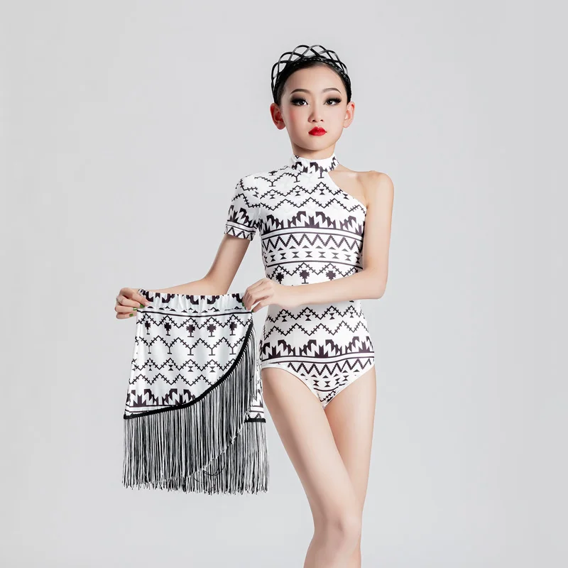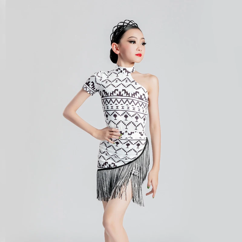 MeJyaecYWlHere you can buy Geometric Patterns Latin Dancing Clothes Girls Single Sleeve Backless Tops Fringed Skirt Rumba Samba Competition Costume YS3097 with free delivery to your post office.