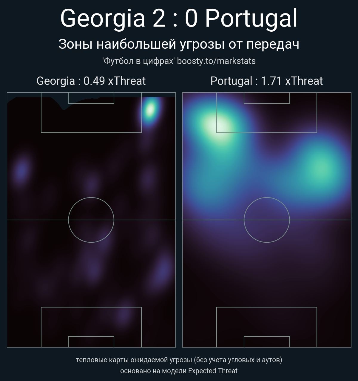xThreat без учета угловых: 0.49 - 1.71