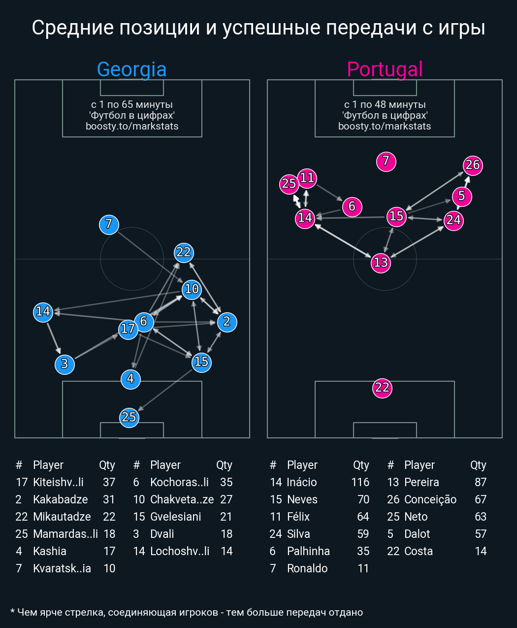 53 успешных передач из 69 попыток (3 под удар, 5 с продвижением, 25 на трети соперника)