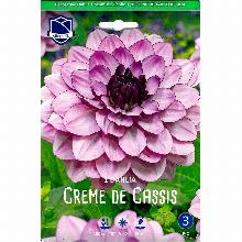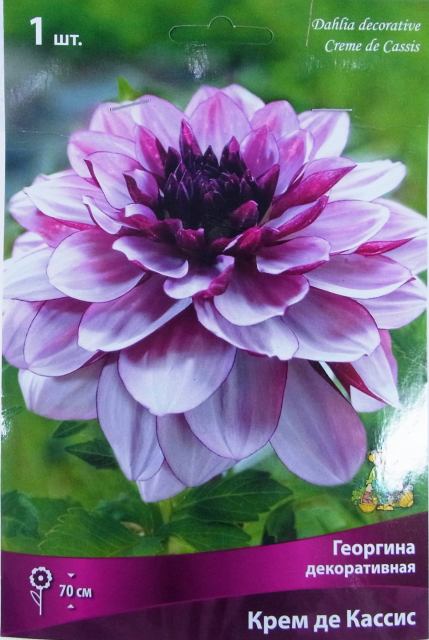 Георгина Крем де Кассис относится к группе декоративных сортов (Decorative dahlias) . . Полностью махровые цветы диаметром 10-15 см напоминают водную лилию . Лепестки широкие и плоские оригинальной двухцветной окраски .
