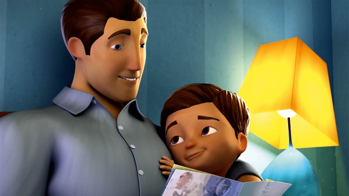 Geova fece prima Gesù e poi gli angeli. Ma non c’era ancora il sole, la luna, le stelle e neanche la terra. Ma papà, allora com’era? Doveva essere un po’ così. Non ci vedo, papà. Geova creò le stelle e il sole... Wow! ...e poi fece la terra. Ma non era come è adesso. All’inizio c’era solo tanta acqua fino a quando... ...Geova fece apparire la terra asciutta. Poi creò l’erba e gli alberi. No! Il mio orsacchiotto! Non preoccuparti Lele. Lo prendo io. Eccolo qui. Grazie, papà. E gli animali dove sono? Già, prima di tutto Geova creò quelli che vivono nel mare... ...e gli uccelli. Papà, sto volando! E sai cos’altro fece poi Geova? Forte! Fece tutti gli animali che vivono sulla terra. C’è un elefante! Wow! E poi fece le persone. Geova creò la terra e tutto quello che vediamo. Ha fatto ogni cosa bella per farci stare bene. Ci rallegreremo della creazione per sempre. Mi sembri pronto per la preghiera. Ringraziamo Geova.
