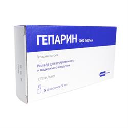 Гепарин 5000 ЕД раствор 5 мл флакон №5 - инструкция, цена . . .