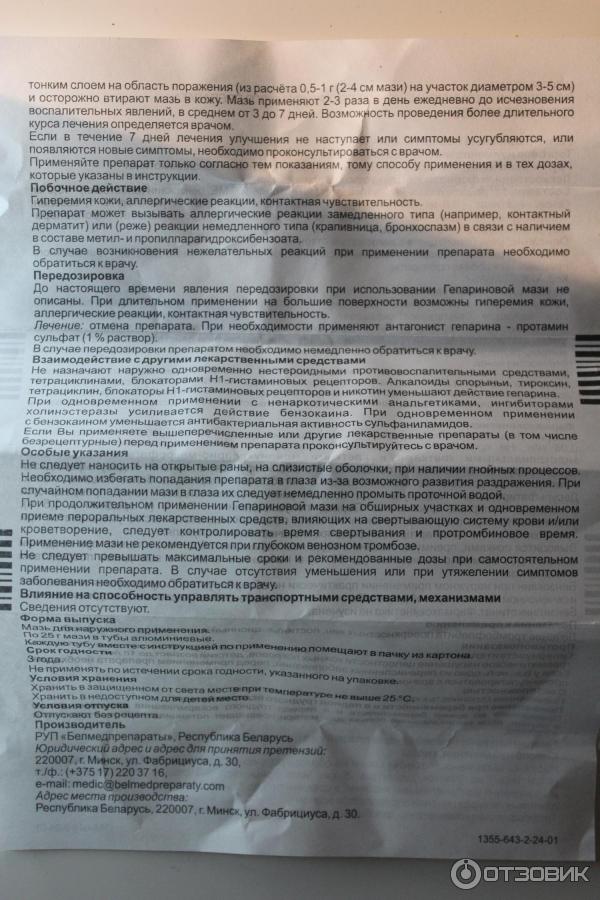 Гепарин мазь 25г Белмедпрепараты: инструкция по применению . . .