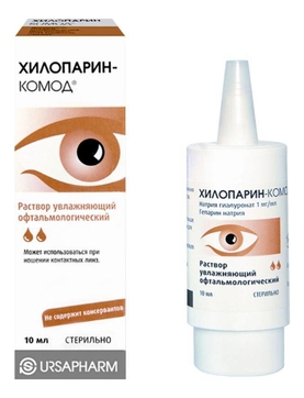 Раствор Хилопарин-Комод - офтальмологическое средство для дополнительного увлажнения, а также защиты поверхности глаза (роговицы и конъюнктивы) .