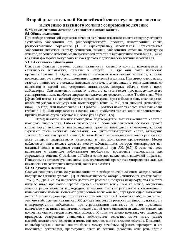 Применение пероральных аминосалицилатов одновременно с высокими дозами стероидов при тяжелом язвенном колите не поддерживается по следующим причинам: 1) они слабее глюкокортикоидов по противовоспалительному эффекту; 2) аминосалицилаты снижают ответ на стероиды . . .
