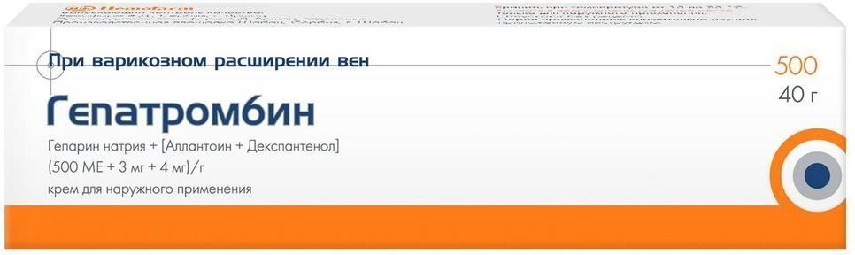 Гепатромбин (500 МЕ+4 мг+3 мг)/г, 40 г (крем)
