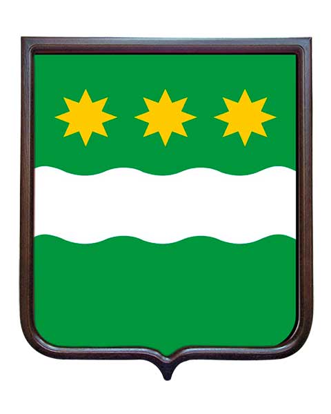 Герб Амурской области . Утверждён в 1999 году . Герб Амурской области представляет собой зеленый геральдический щит с серебряным волнистым поясом, сопровождаемым во главе щита тремя золотыми о восьми лучах звездами .