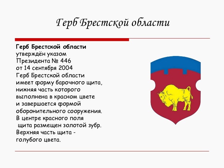Герб Бреста свидетельствует о храбрости и мужестве защитников родного города . Этот герб и сегодня является официальным символом города, напоминая о героизме жителей города в . . .