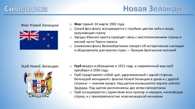 Герб Новой Зеландии, значение, фото, подробное описание и история герба . - вОтпуск .ру . До 1911 года гербы Британской империи и Новой Зеландии были идентичны . С получением статуса доминиона в 1907 году встал вопрос о разработке нового символа, и даже проведен . . .