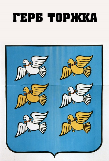 Герб Торжка утвержден 10 октября 1780 года (ПСЗ РИ № 15073) вместе с другими гербами городов Тверского наместничества . "В голубом поле три серебряных и три золотых голубя . . .