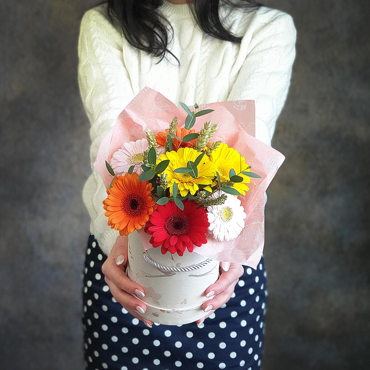 Герберы В Шляпной Коробке Фото
