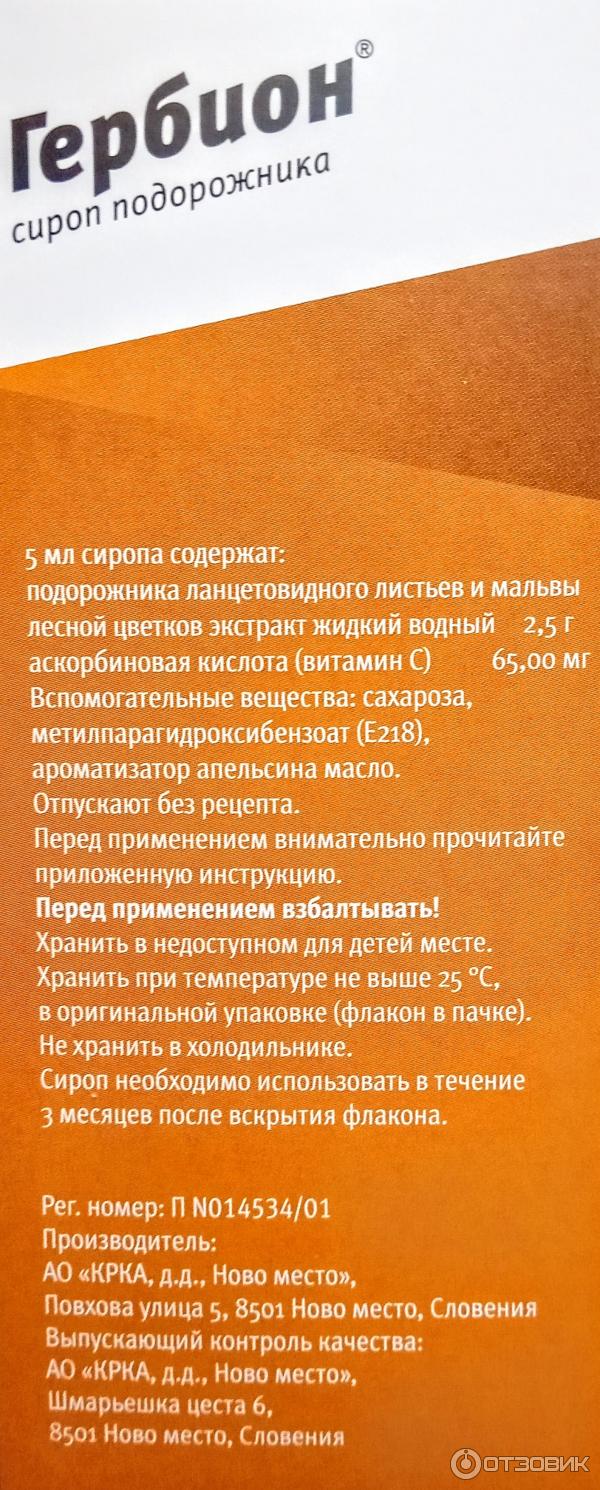 Отзывы на Гербион сироп подорожника фл . 150мл