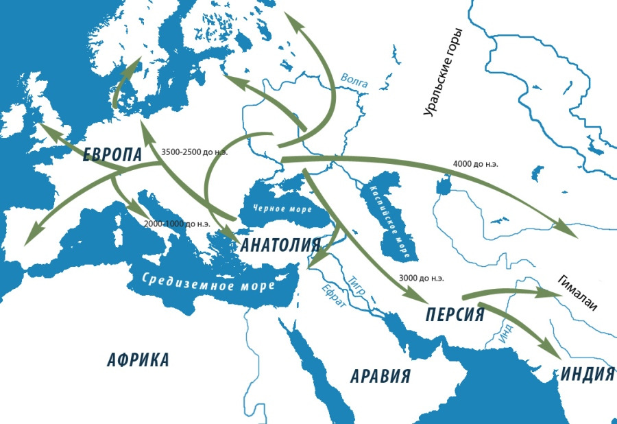 Так началось движение народа, создавшего великую цивилизацию Передней и юга Средней Азии VIII–IV тыс. до н. э., в Европу, земли которой в IV–III тыс. до н. э. становятся климатически самым благодатным районом Евразии. Народы несли на запад язык, культуру, религию. Именно это эпическое движение из центра на запад и юг континента, длившееся несколько тысяч лет, положило основание современной западной и восточной индоевропейской цивилизации Евразии и общности индоевропейских языков, культур и религий.