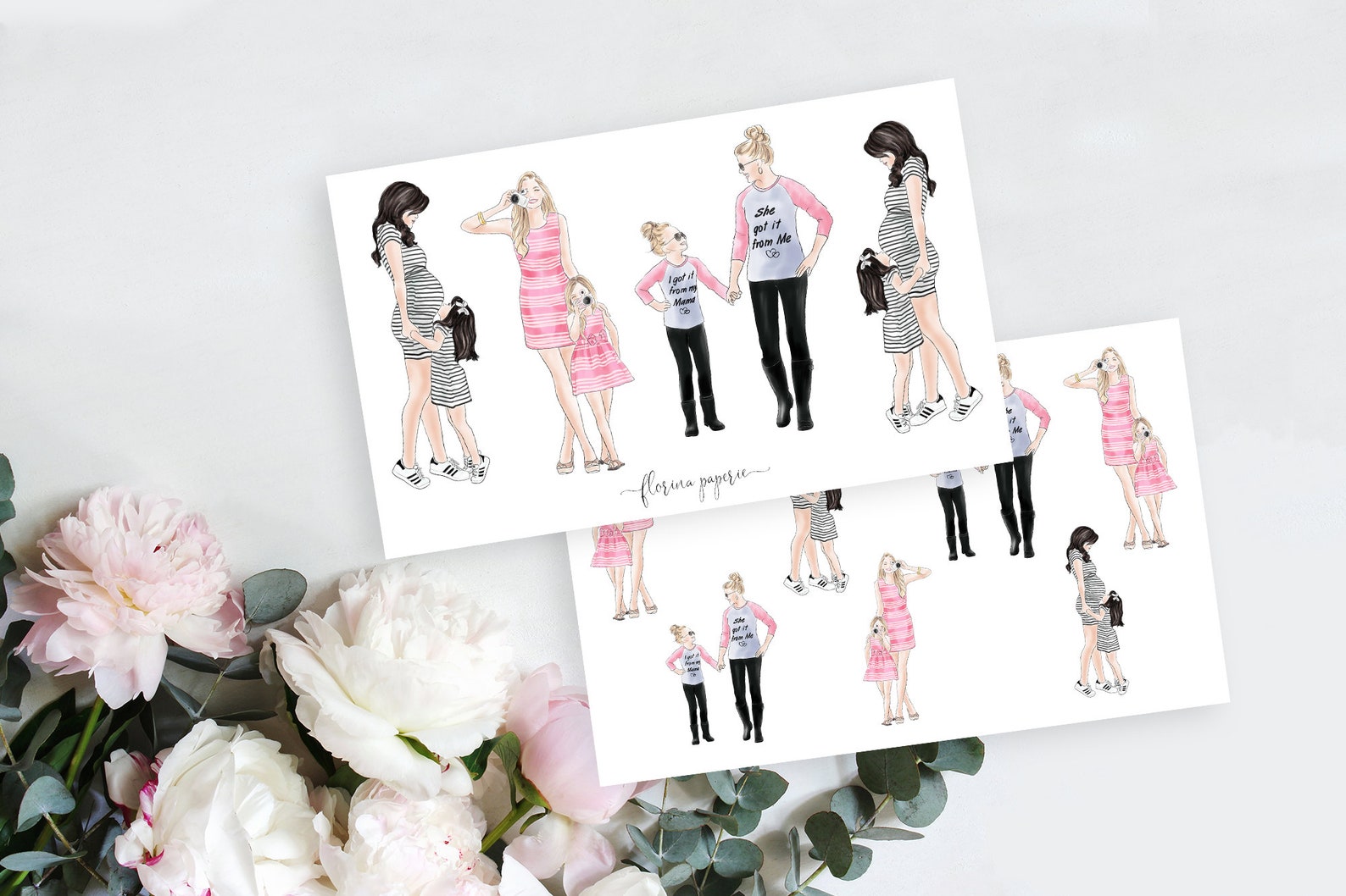 Holding a bunch of flowers, Nina Roder's mother takes up the same position as she is photographed by her daughter