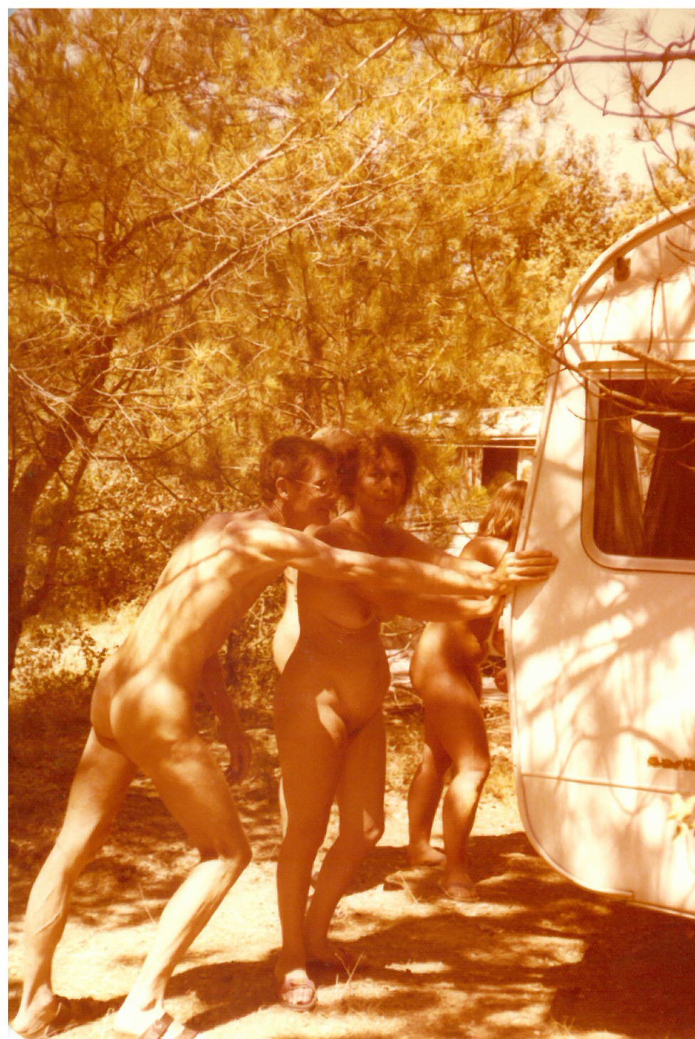 When Mr. R. and his wife started their young family, the attraction of FKK was, he related, practically motivated: “In the beginning, we found it liberating, but also practical to go without damp swimsuits, and not to have to struggle to get the three boys into theirs. Once they hit puberty, the boys went their own way and each started wearing bathing suits, for a while anyway. But with time, they all went back to ‘without’.”