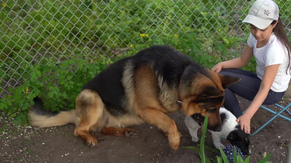 German Shepherd Bangs Girl