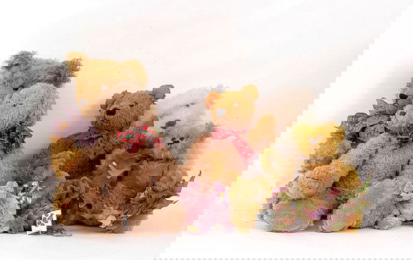 German blondy riding teddy bear