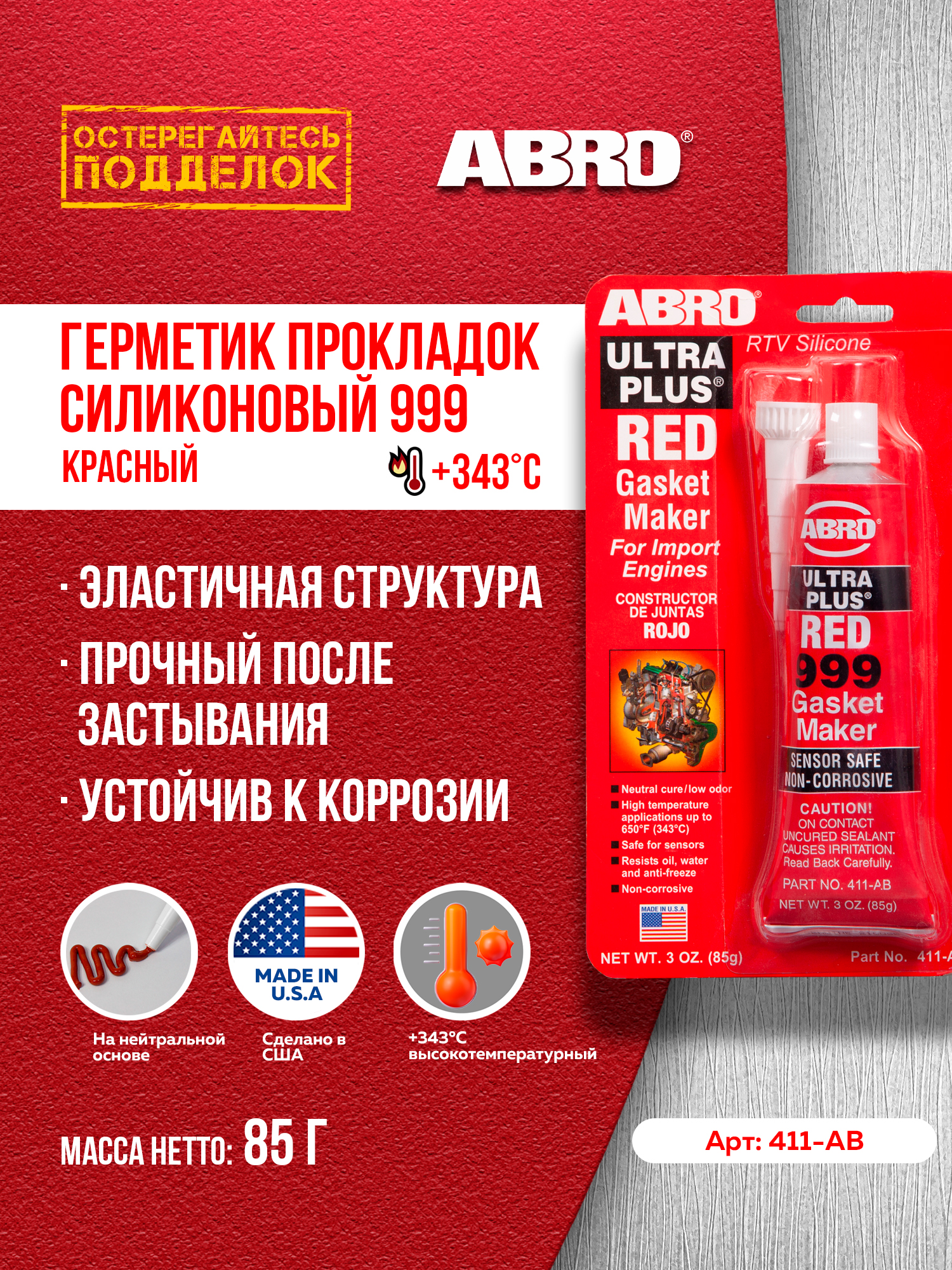 Герметик abro красный 85г 125 фотографий