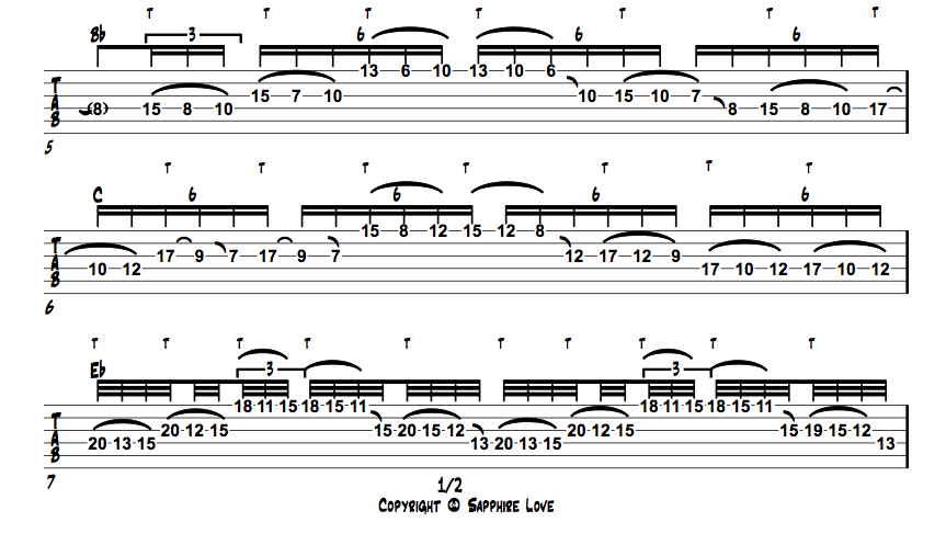 ‣ One of the biggest barriers to improvising on guitar is finding and mapping out the relevant chord tones and scales all over on the fretboard in real time.