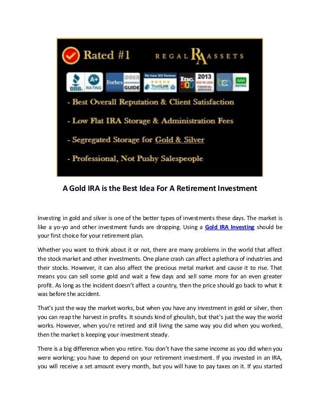 Well before doing business with them, analysis any golden dealer. http://www.goldira.pw/gold-as-an-investment/ You can find merchants available. They will likely do anything whatsoever to help you be given a awful package.