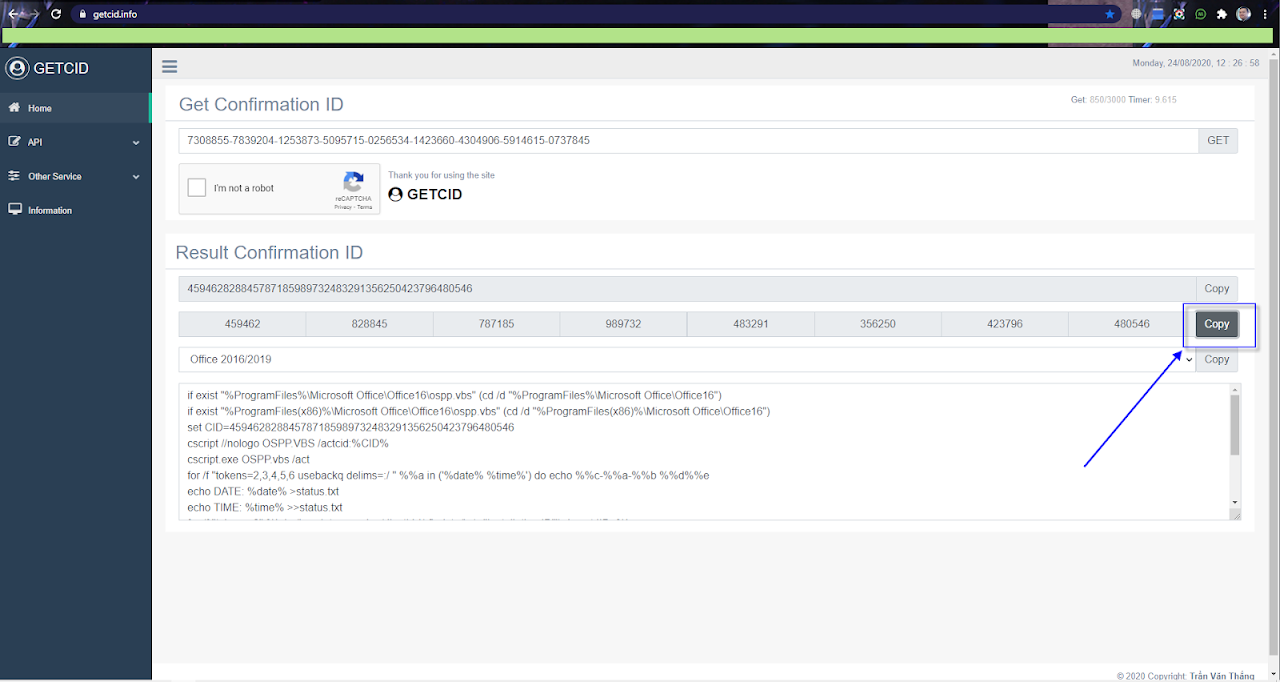 Get confirmation id