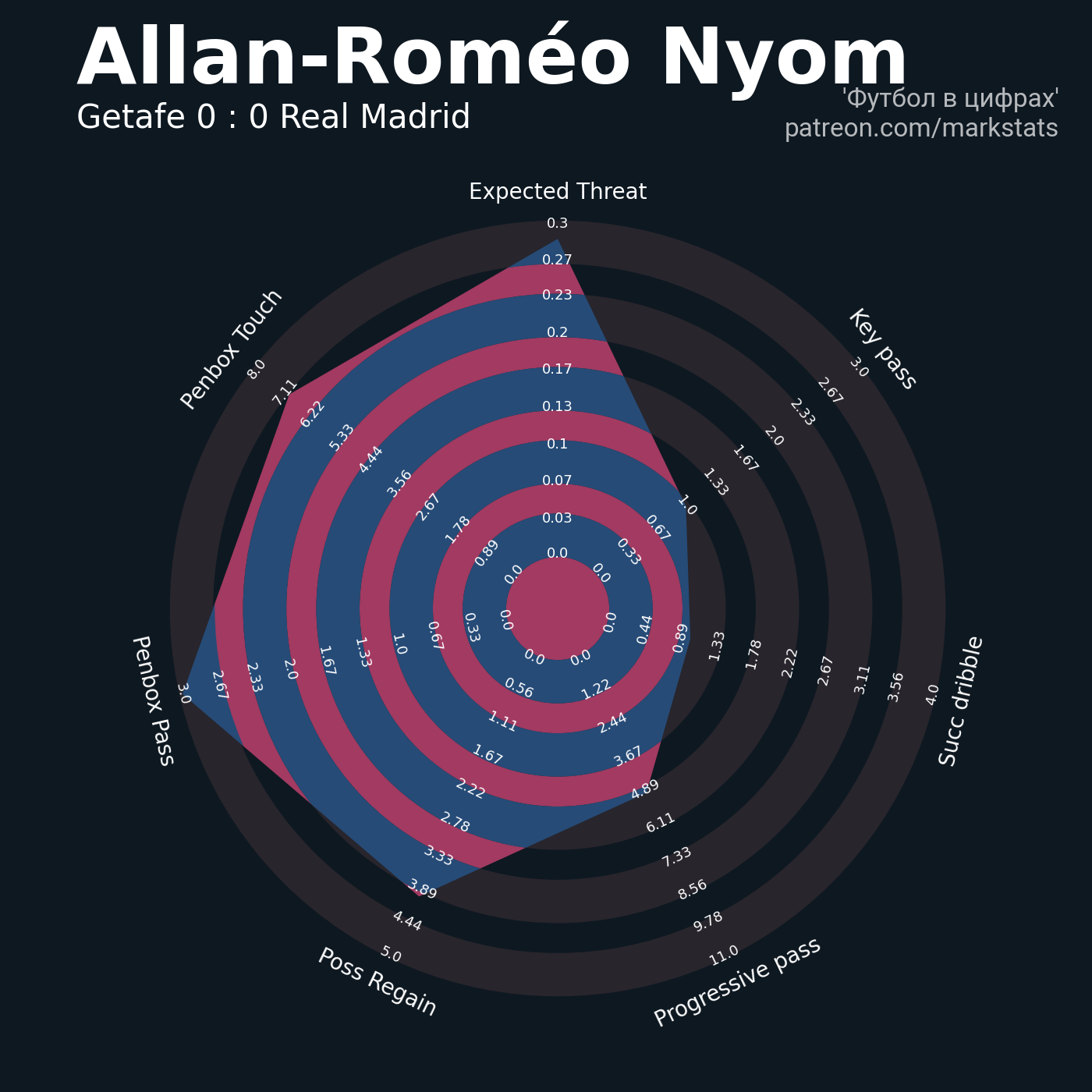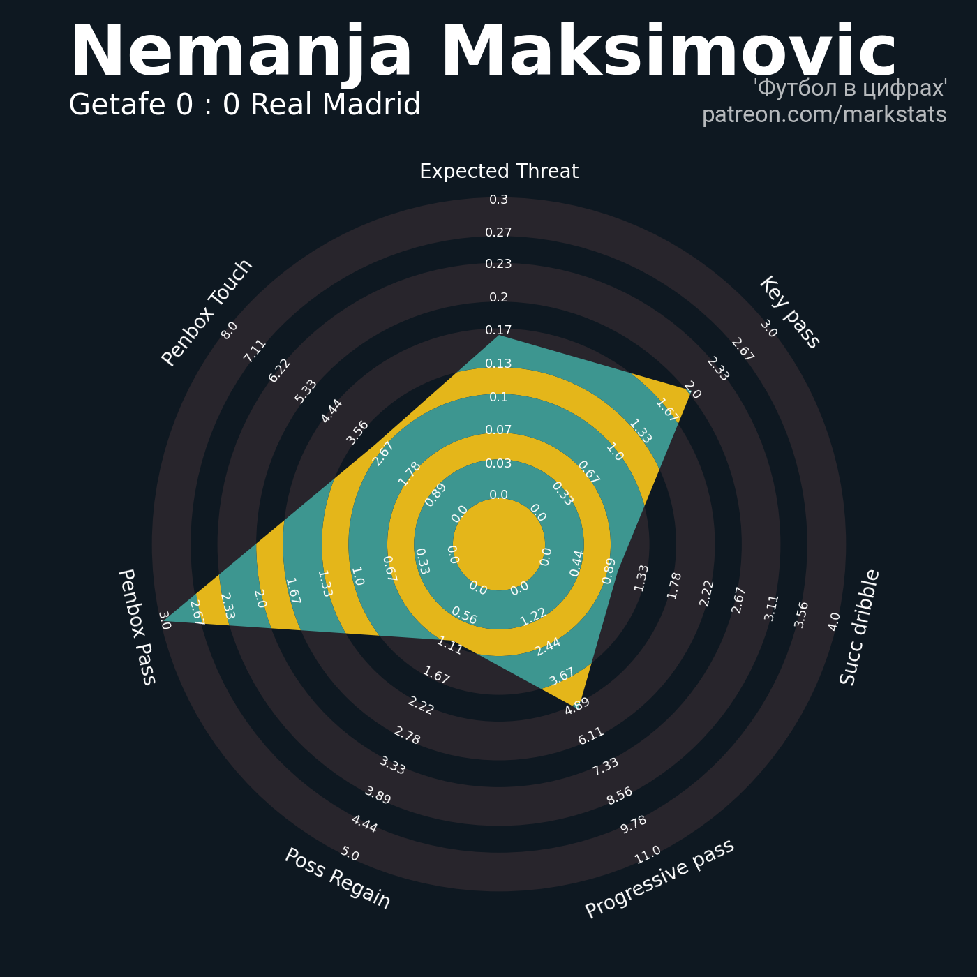 ▪ xThreat без учета угловых: 1.53 - 1.13