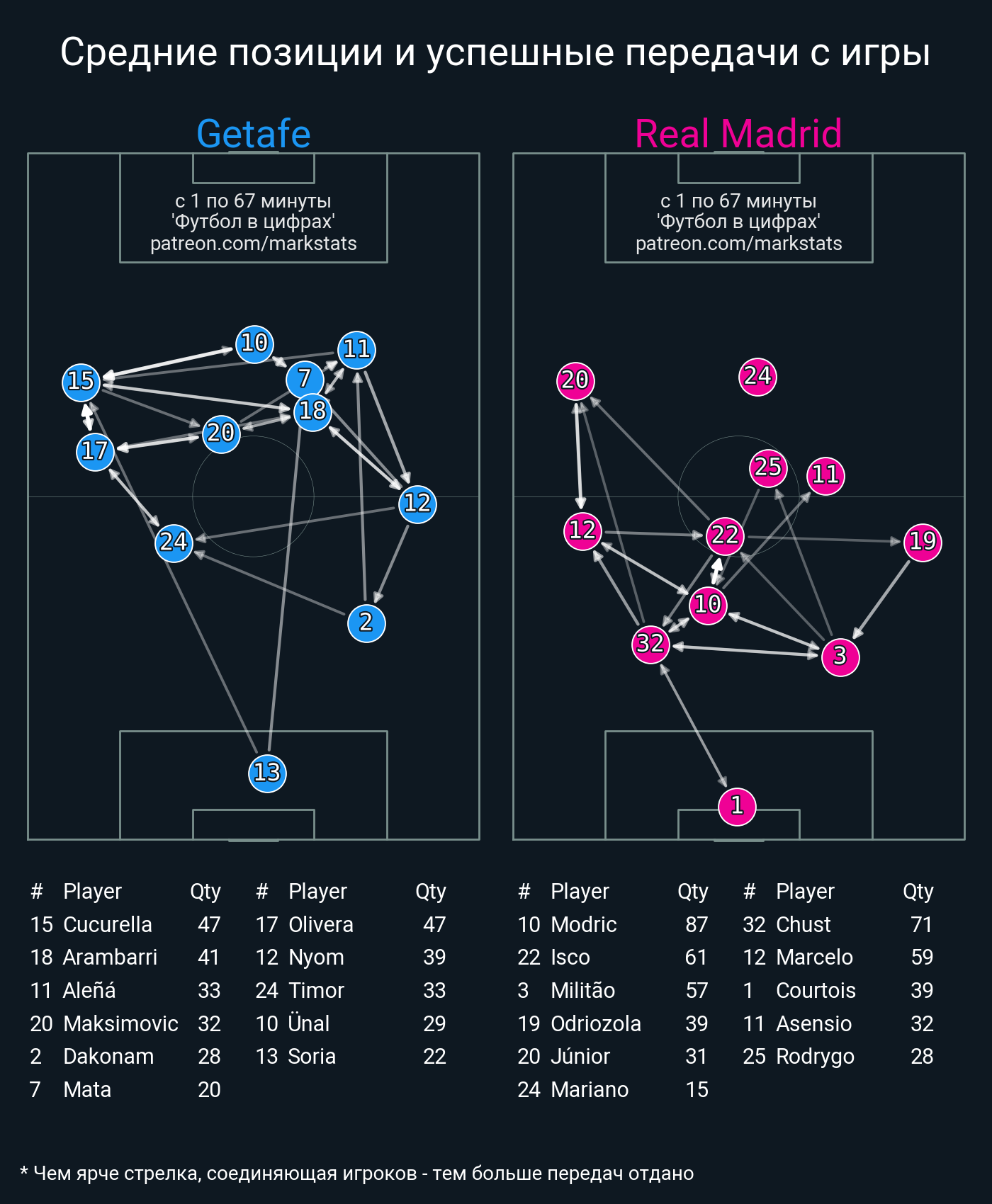 ▪ 53 успешных передач из 68 попыток (2 под удар, 8 с продвижением, 15 на трети соперника)