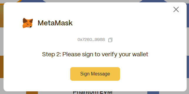 8) Choose MetaMask or another wallet where you have meerkats stored and ask for a signature message:
