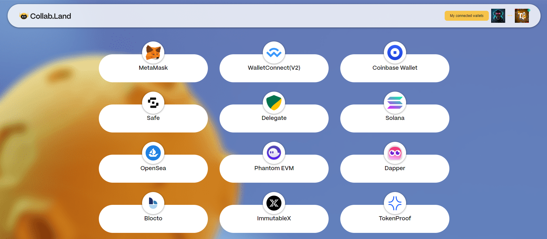 7) Click on the Connect Wallet button and you will be redirected to the Collab.Land website