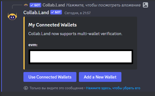 We receive a message that the wallet is bound