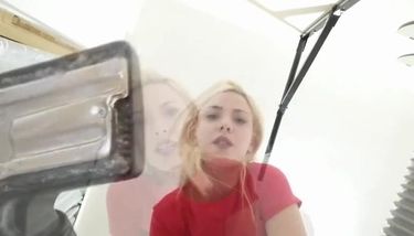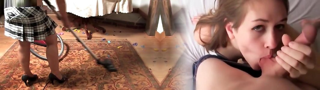 You watched AndrΓ©a vacuuming, her gold earrings glittering in the sunlight and she had a bright white smile on her face . Then she did something you've been waiting for . She bent over with her ass high up in the air and her cleavage spilling out of her shirt .