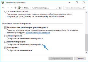 Гибернация нет в меню