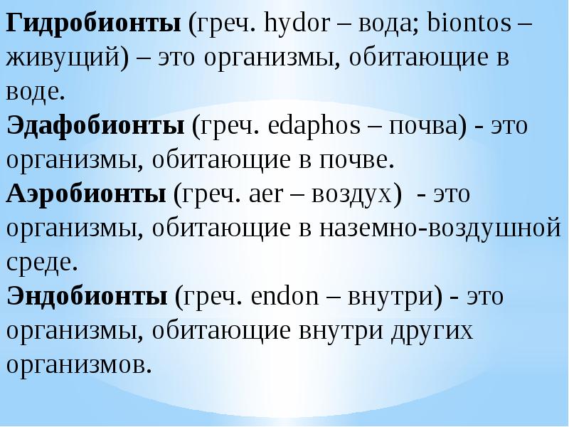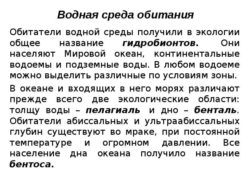 Гидробионты среда обитания